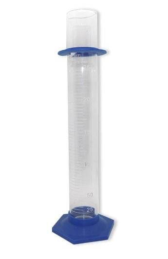Soda camından imal edilmiş ve 250 ml kapasitededir. 5 ml lik bölmelerle taksimatlandırılmıştır. Ölçü çizgilerinin kalınlığı 0,4 mm olup aside ve mekanik çizilmelere dayanıklıdır. Kimyasala ve yüksek ısıya dayanıklı özellikli camdan imal edilmiştir. Taban şekli çokgen yapıdave cam silindire uygun ölçüde olup plastik malzemeden imal edilmiştir. Dereceli silindir düz bir yüzey üzerine konulduğunda sallanmadan dikey durabilmektedir. Silindirin üzerine; ml işareti ve standart referans sıcaklığını gösterir 20 C değeri yazmaktadır. Ağız kısmı gagalı yapıda olup sıvıların aktarımında kolaylık sağlamaktadır.